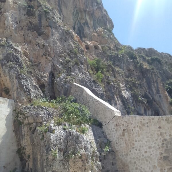 Fluchtmöglichkeit und Aufstieg im Fels mit eingehauenen Fenstern Fluchtmöglichkeit und Aufstieg im Fels mit eingehauenen Fenstern